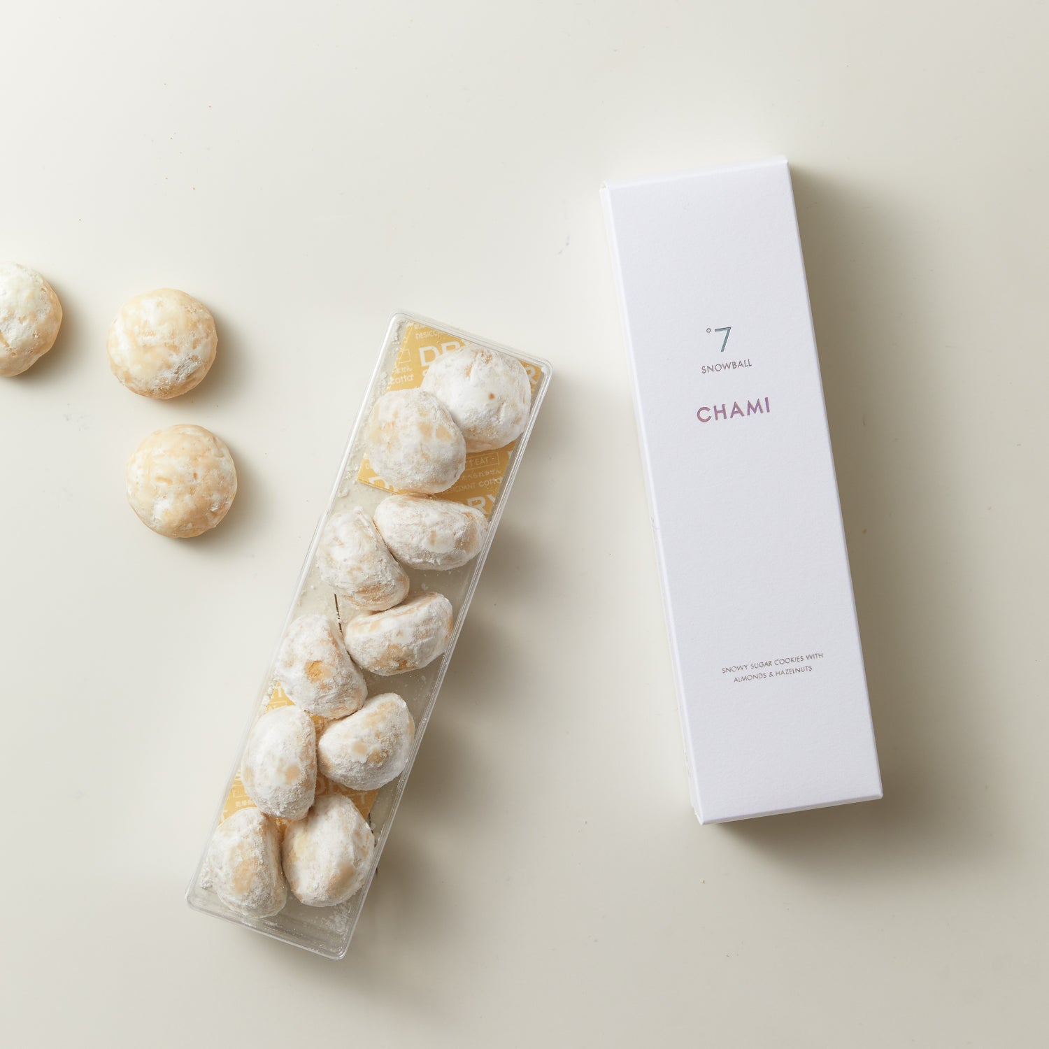 アーモンドの香ばしさが漂うサクほろ食感のクッキー。真っ白な見た目で店頭では一番人気のクッキーです。毎日食べても飽きない、そんなコーヒーに合うちょこっとスイーツを。7days cookies。CHAMIのスイーツはどれもコーヒーとのペアリングを意識して作ったもの。ご自身用に。おもたせに。ギフトにどうぞ。
