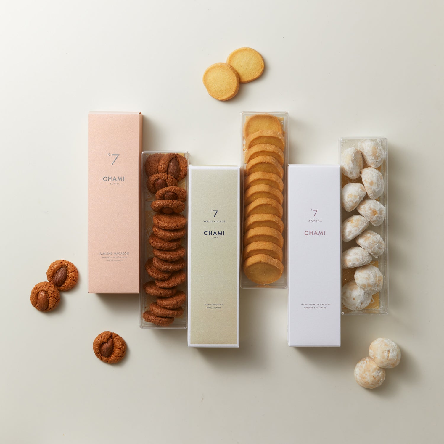 ザクザク食感と挽きたてアーモンドの香ばしさがおいしいアーモンドクッキー。シンプルだからこそ素材の香ばしさが感じられるクッキーです。毎日食べても飽きない、そんなコーヒーに合うちょこっとスイーツを。7days cookies。CHAMIのスイーツはどれもコーヒーとのペアリングを意識してつくったもの。ご自身用に。おもたせに。ギフトにどうぞ。