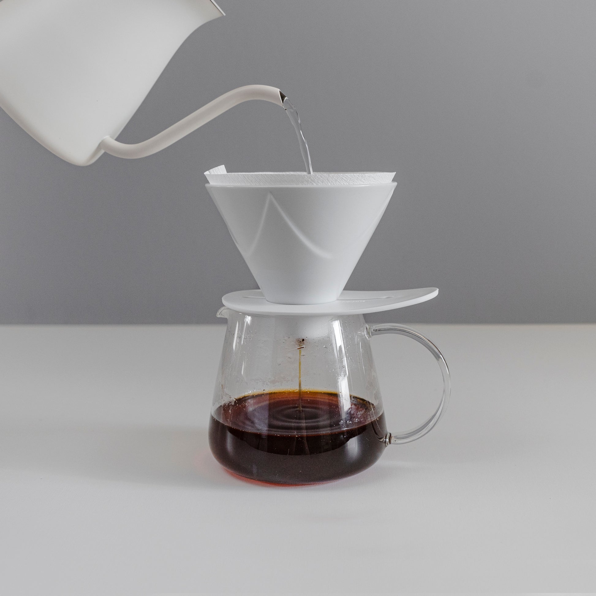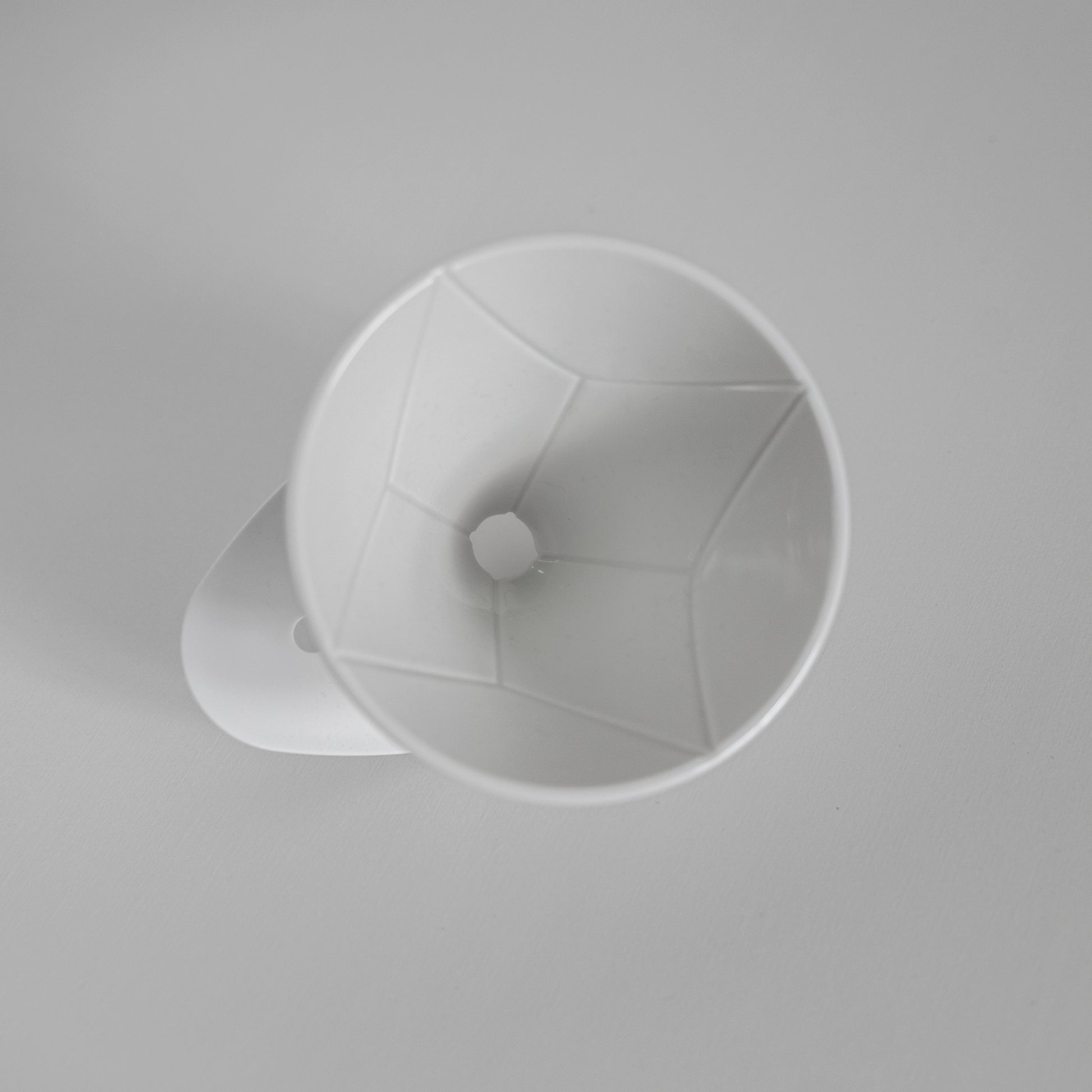 ドリッパーの内側に凸のリブがなく、ドリッパーにペーパーが張りつき、星形の「溝」を伝ってゆっくりとコーヒーが抽出されます。ホルダーは取り外せるので、スタンドにのせてドリッパー本体だけで使用することも可能です。