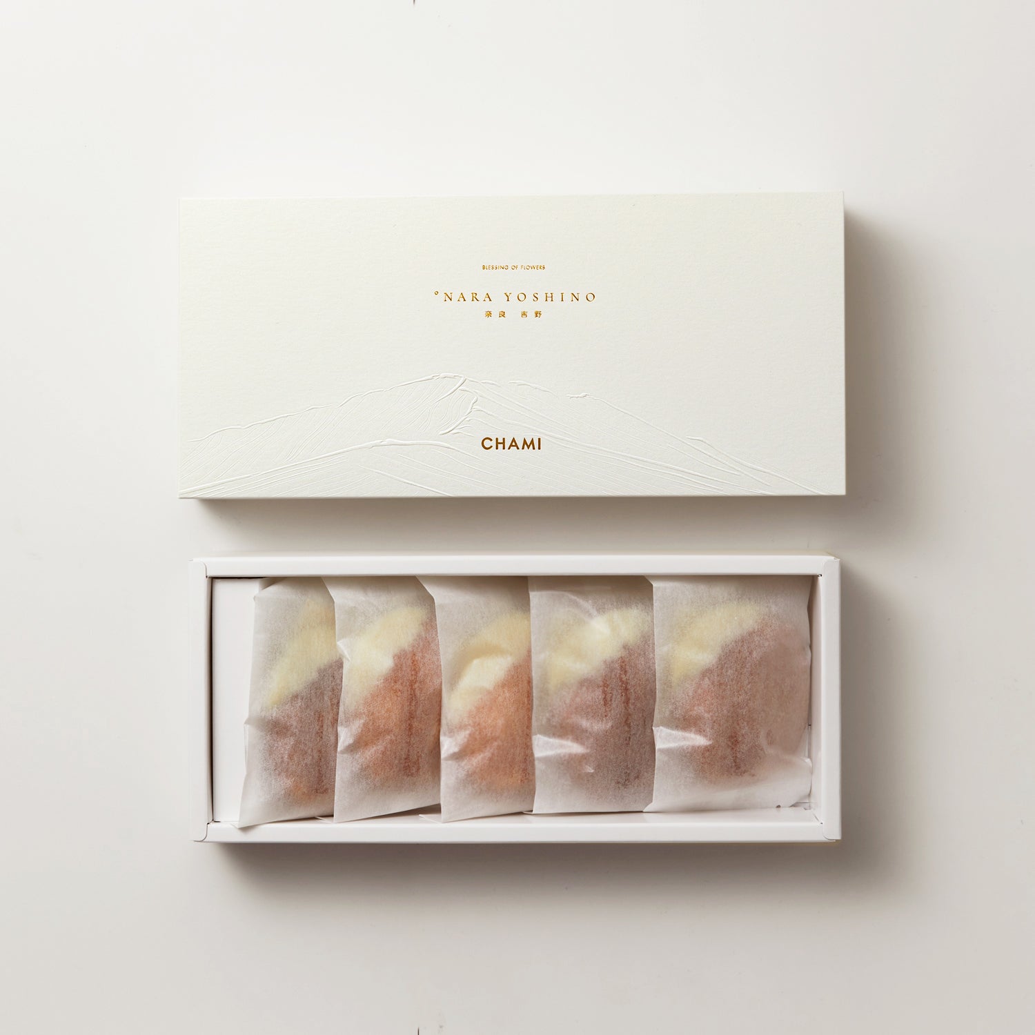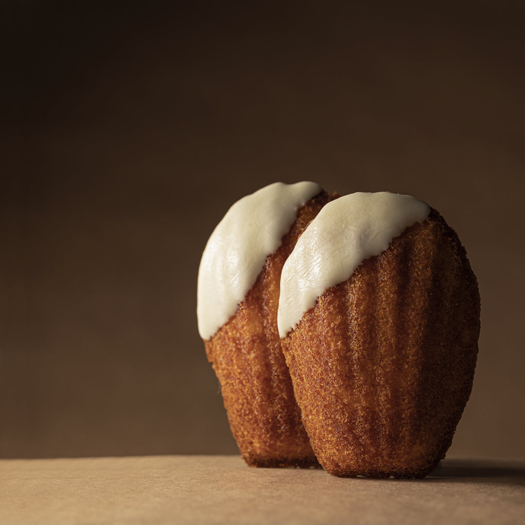 卵と北海道産バターをたっぷりと使用し、香り高く、ふっくらとした口あたりが特徴。奈良、吉野山の自然の美しさにあやかってアクセントにホワイトチョコレートをコーティングしました。CHAMIのスイーツはどれもコーヒーとのペアリングを意識して作ったものです。